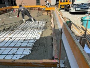 職人さんの都合(いい職人さんたちは”引く手数多”でなかなか手が取れないんです汗)で、基礎ができてから少し上棟まで時間があいてしまいましたが、天気のいい良き日に無事上棟することができました
