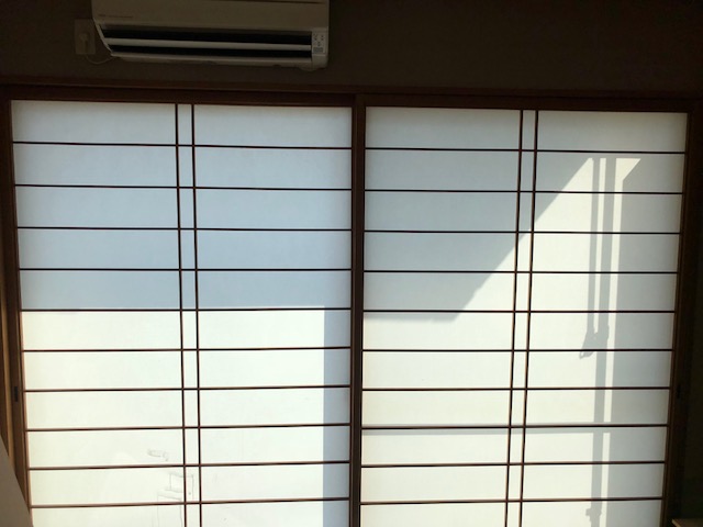 窓の上にエアコンはつけてますが、太陽の陽射しが、ガンガンに入っているときは、