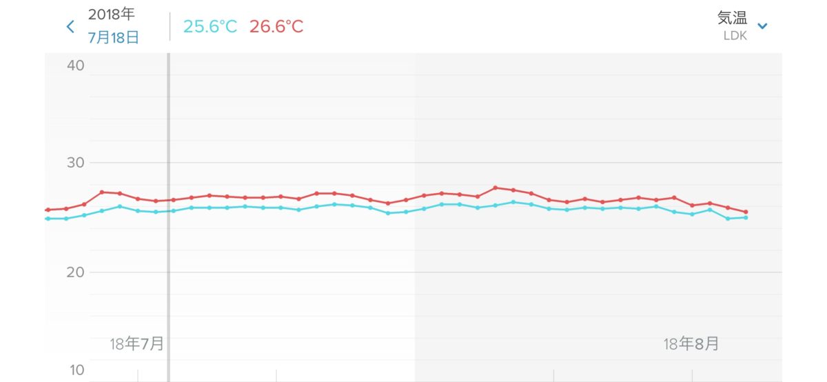 気温が36~27℃にもなるような暑いときは相対湿度は低く出るのですが、昼夜問わず、ずっと絶対湿度20g程度のジメジメした空気
