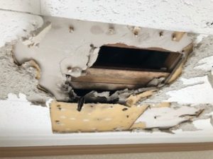 後日、カビだらけの天井をはがして、直接、雨漏りしている付近を見えるようにさせて頂きました