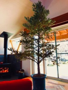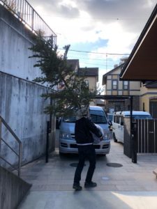 毎年、裏庭に植えてある、モミの木を堀りだして、必死に運んで室内に